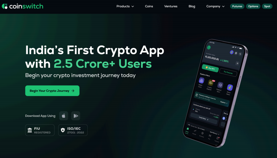 | Security | Two-factor authentication (2FA), secure custody, compliance-focused operations. FIU Registered, PMLA Compliant, ISO 27001 Certified. |